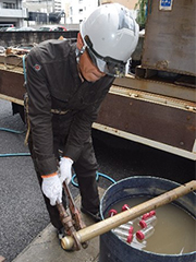 専用マシンを操作して、土の硬さを調べるお仕事です。